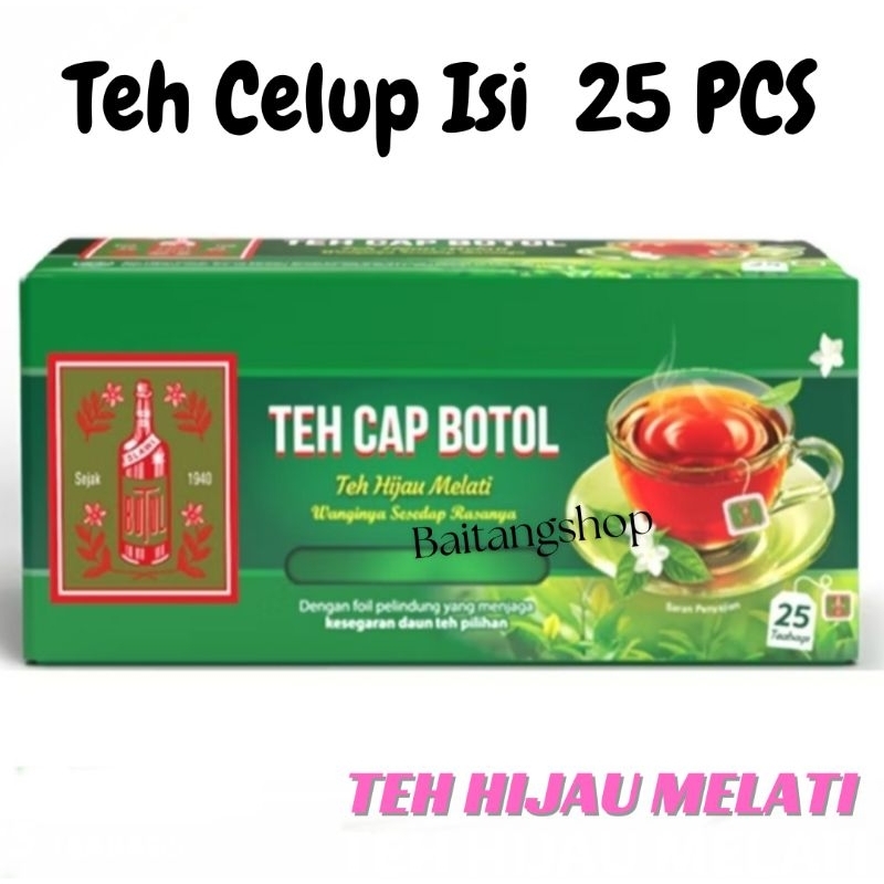 Teh Cap Botol Hijau Aroma Melati isi 25 Bags - Teh Celup Cap Botol Hijau 1 Pack isi 25 Pcs