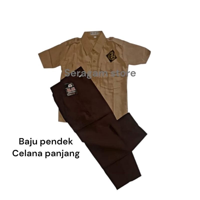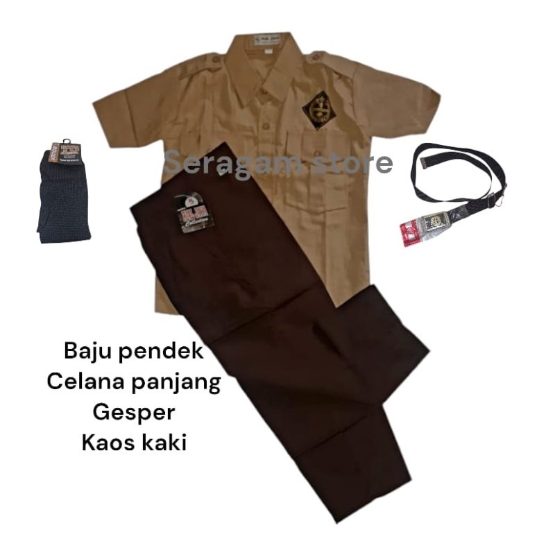 SERAGAM SD SETELAN SET PRAMUKA LENGKAP BAJU PENDEK, CELANA PANJANG, TOPI, GESPER, DAN KAOS KAKI