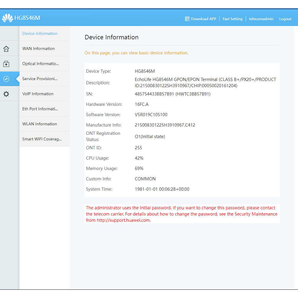XPON ONT HUAWEI HG8546M - Single Band