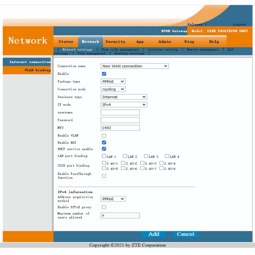 ZTE F450 V3 SUPPORT REMOTE