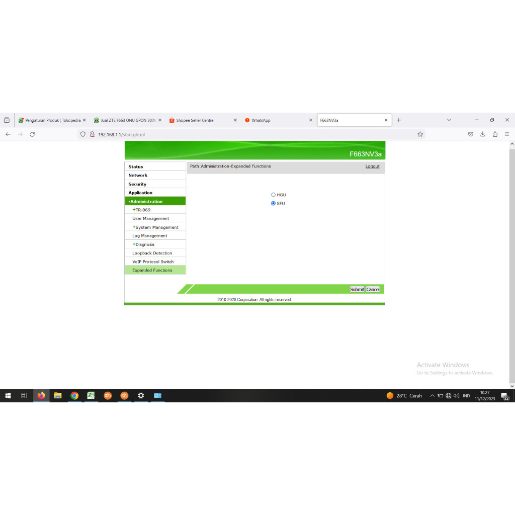 XPON EPON GPON ZTE F663NV3A ONU ONT ROUTER