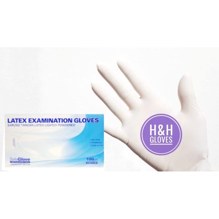 Sarung tangan karet safe glove latex powder / hand gloves latex / Sarung Tangan kesehatan /handscoon medis