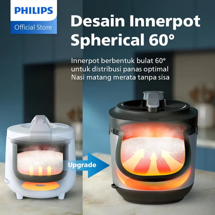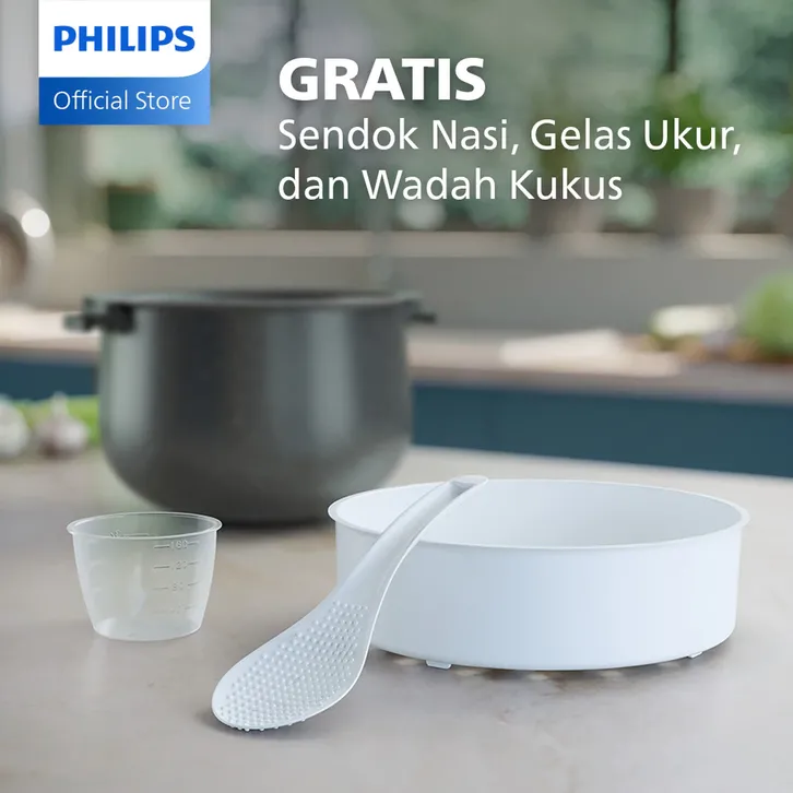 Rice Cooker Philips Magicom 1.8 L - 3000 Premium Series HD3211/31 - Silver - Bakuhanseki Inner Pot - Anti lengket