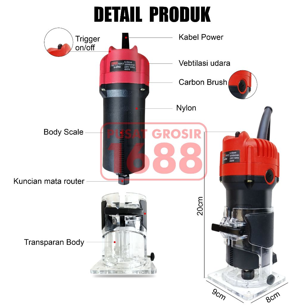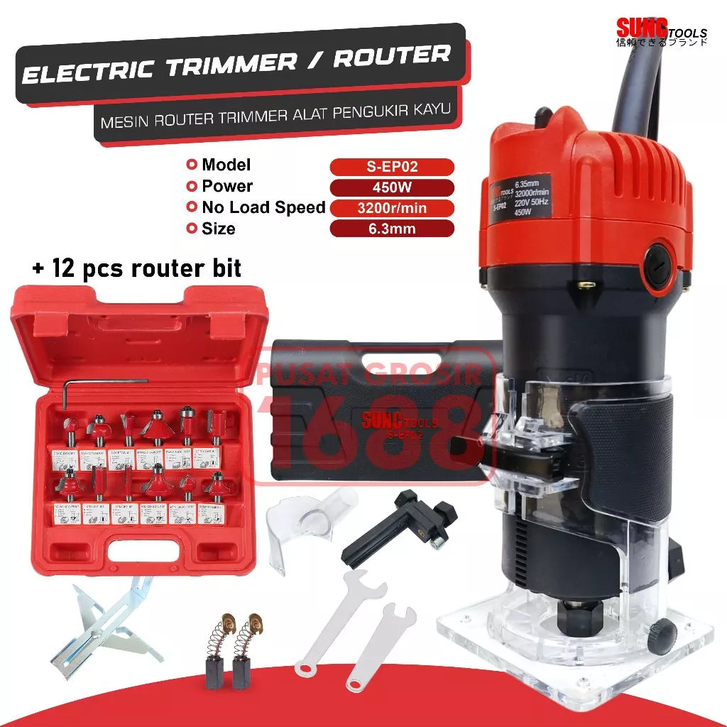 Mesin Router Trimmer Alat Pengukir Kayu 6.35mm SUNC TOOLS