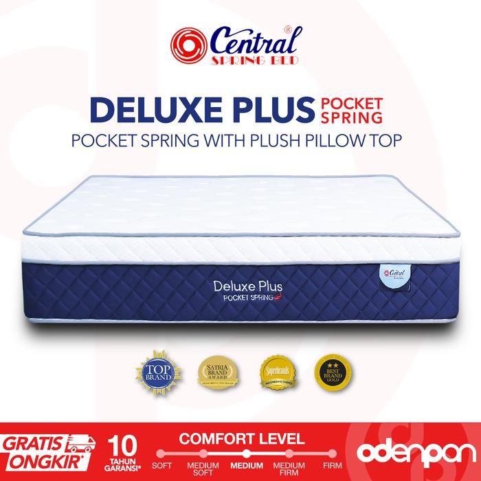 CENTRAL Kasur Spring Bed Mattress Deluxe Plush Top Pocket Spring 33 cm - Kasur Saja 90 x 200 cm