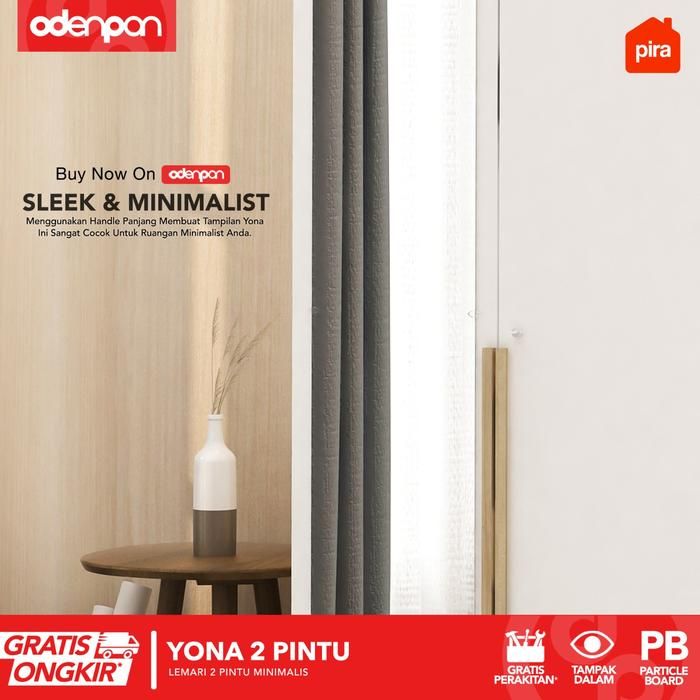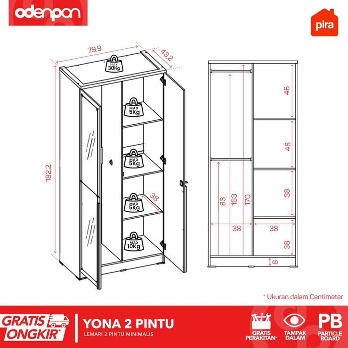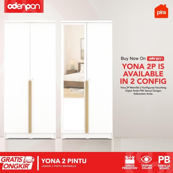 PIRA Lemari Pakaian / Baju 2 Pintu Dengan Cermin YONA 2P - FREE ONGKIR [ODENPAN] - Cokelat