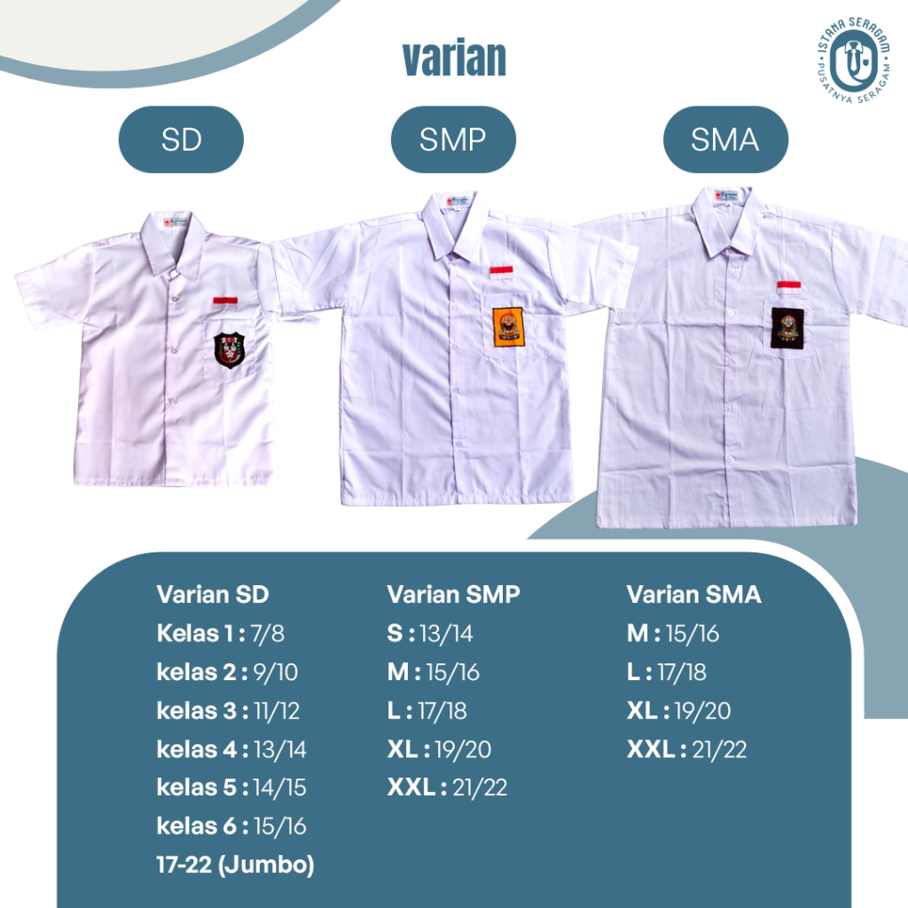 Baju Seragam Sekolah Lengan Pendek Sd Smp Sma Laki Laki Perempuan Kemeja Hem Putih Bahan Katun Oxford Adem Nyaman Ukuran