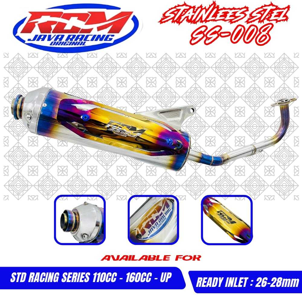 knalpot standar racing stainlees ( SS-008 ) RCM UJUNG BLUE TAMENG mio sporty/smile, beat, scoopy dll