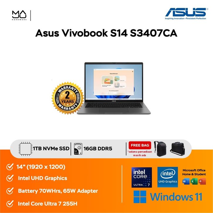 ASUS Vivobook S14 S3407CA-VIPS7111M VIPS7112M - Matte Gray [Intel Core Ultra 7 / Intel UHD Graphics / 16GB / 1TB / 14inc