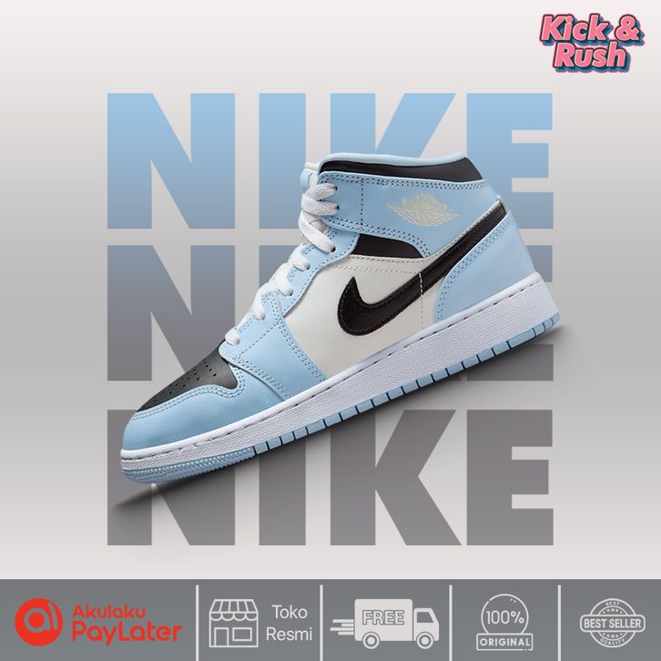 [EXCLUSIVE] Sepatu Nike Air Jordan 1 Mid Ice Blue Gs Women original 100%