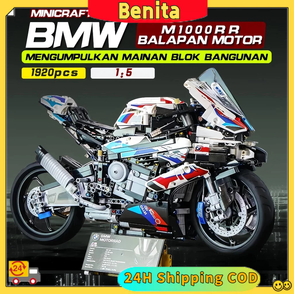 mainan lego best seller 1920PCS 1:5 Brick Block Mainan Sepeda motor BMW M1000RR Minicraft Brick Hobi & Koleksi Mainan