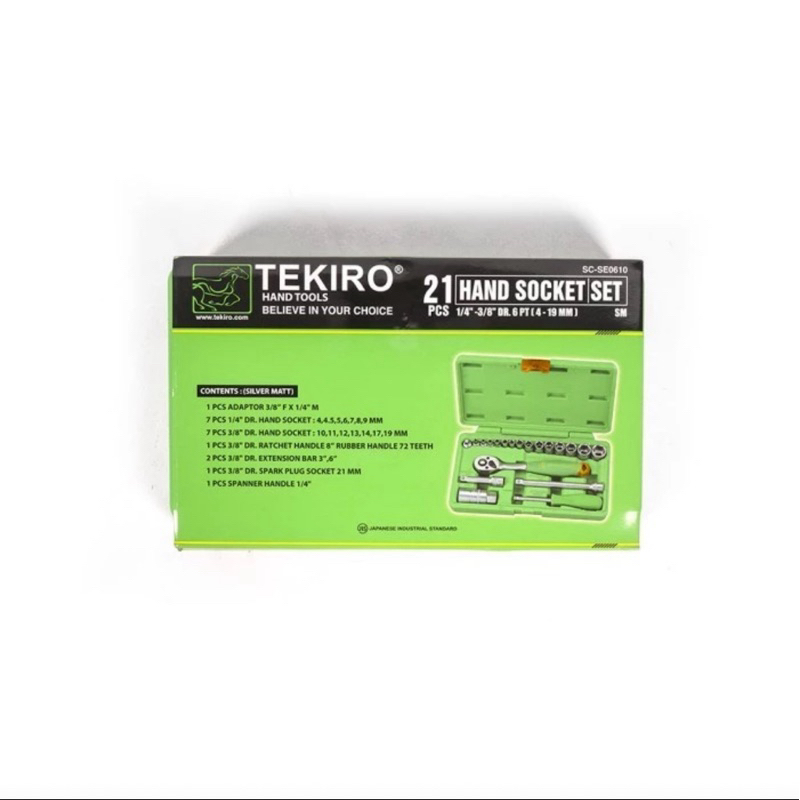 TEKIRO SOCK SET 21PCS 1/4"-3/8" BOX PLASTIK/ HAND SOCKET SET KUNCI SOK SOCK SOCKET 21 PCS