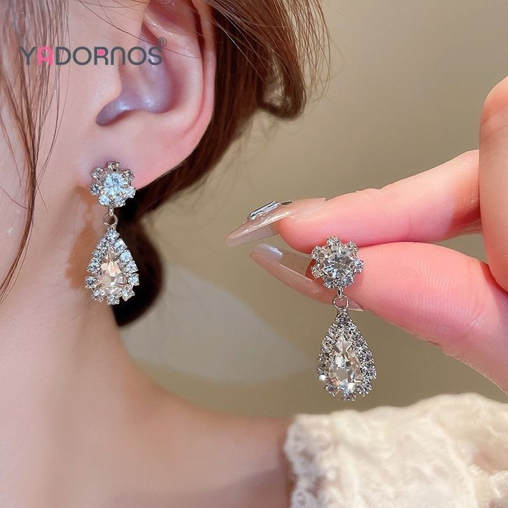 Kalung Wanita Yadornos Anting Menjuntai Perhiasan Tetesan 2 Buah Berkilau Untuk Pesta Topeng Pernikahan
