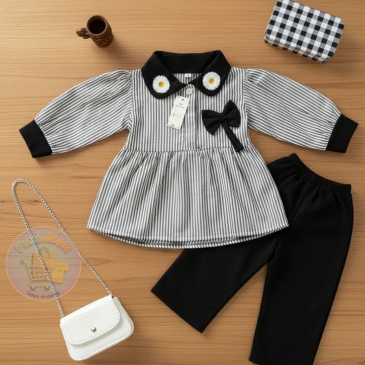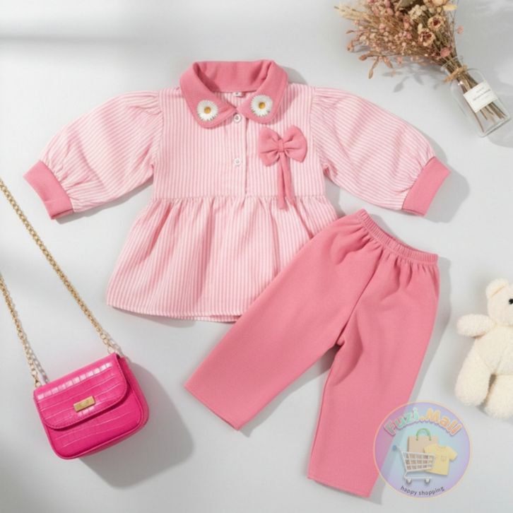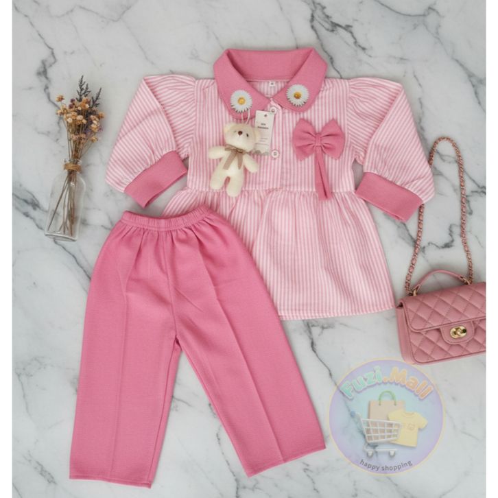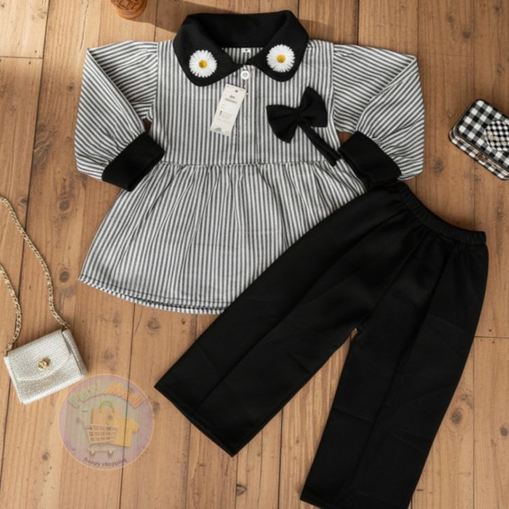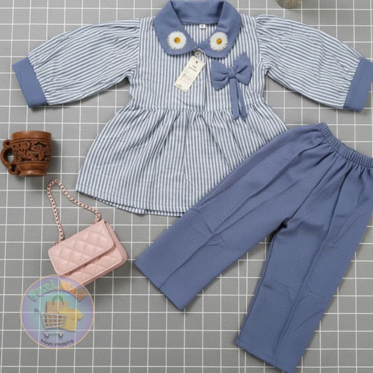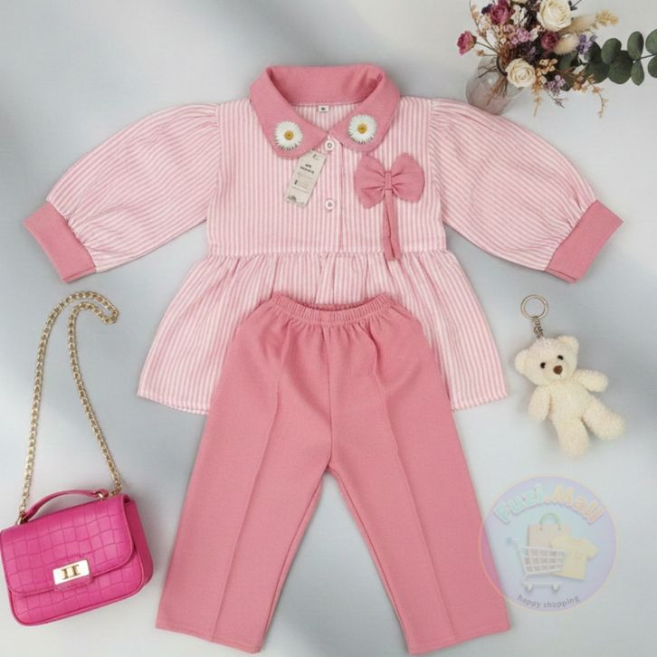 Setelan Raaina Baju Celana Anak Perempuan Usia 1-8 Tahun Model Motif Salur Terbaru Setelan Anak Perempuan Kekinian Baru