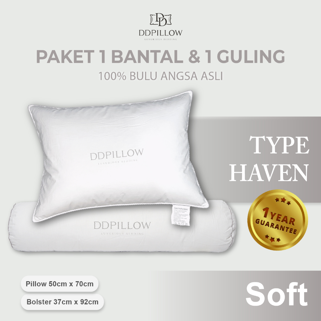 DDPillow Set 1 Bantal Guling Bulu Angsa Asli Type Haven / Bantal Hotel Bintang 5 / Bantal Empuk