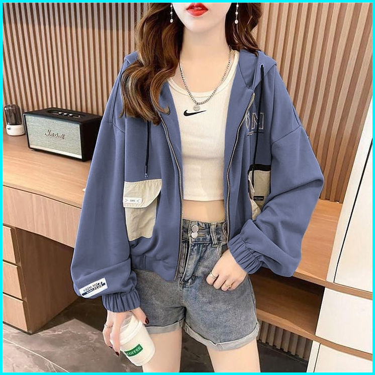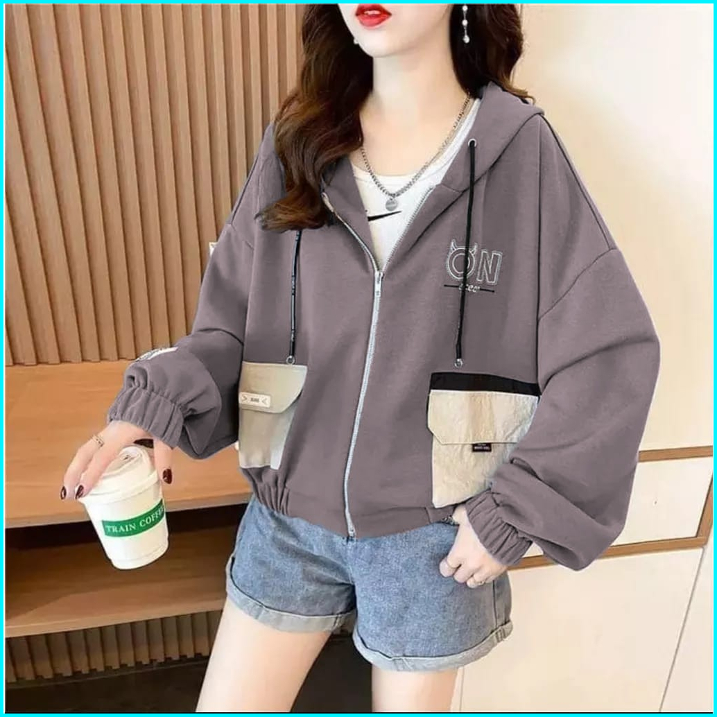 On Ocean Hoodie Zipper Sweater Wanita - Sweater Wanita Korean Style