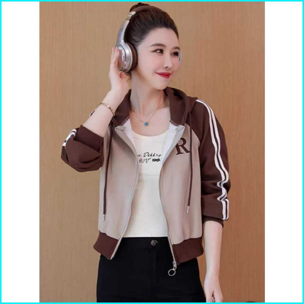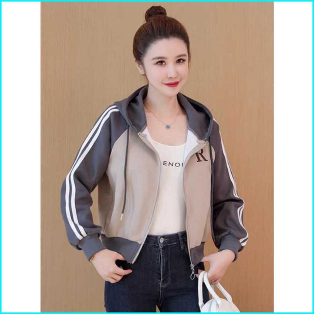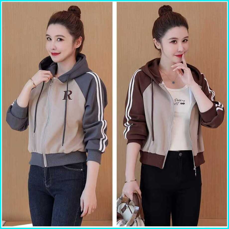 Jaket Wanita Korean Style R Zipper Hoodie Reglan Sweater - Jaket Casual Atasan Wanitan Kekinian