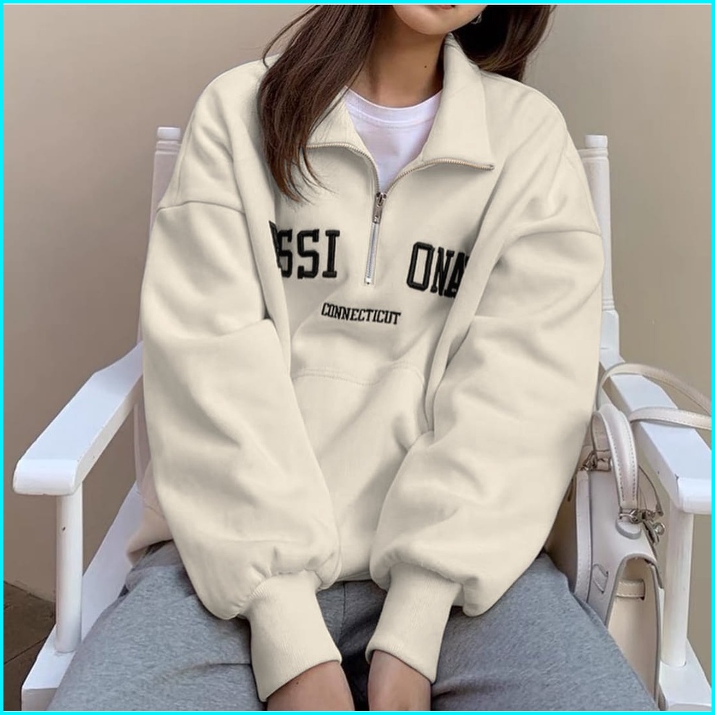 Bordier Passionate Zipper Kerah Sweater Oversize Wanita Korean Style - Sweatshirt Sweater