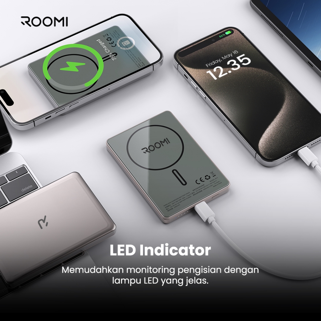 ROOMI Ion Slim Magnetic Wireless Charging Powerbank 20W iOS and Android Compatible 5000mAh