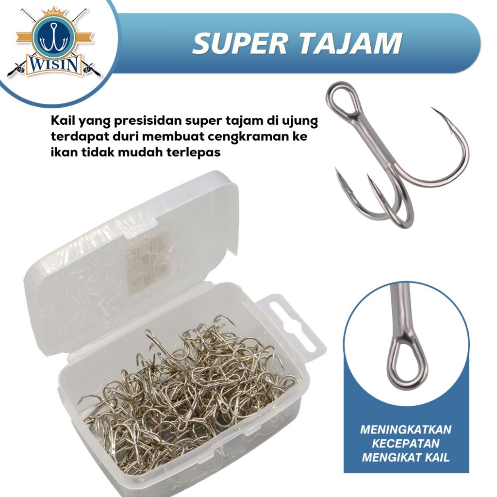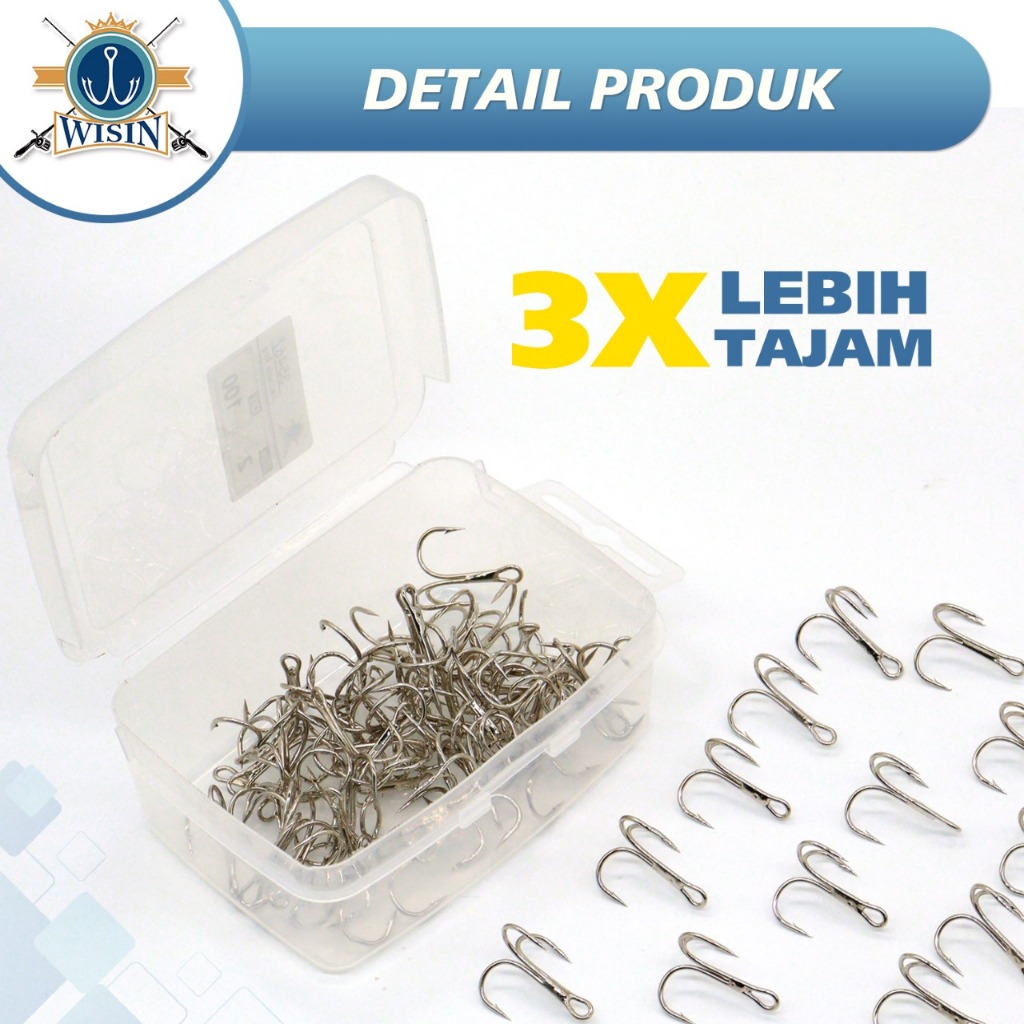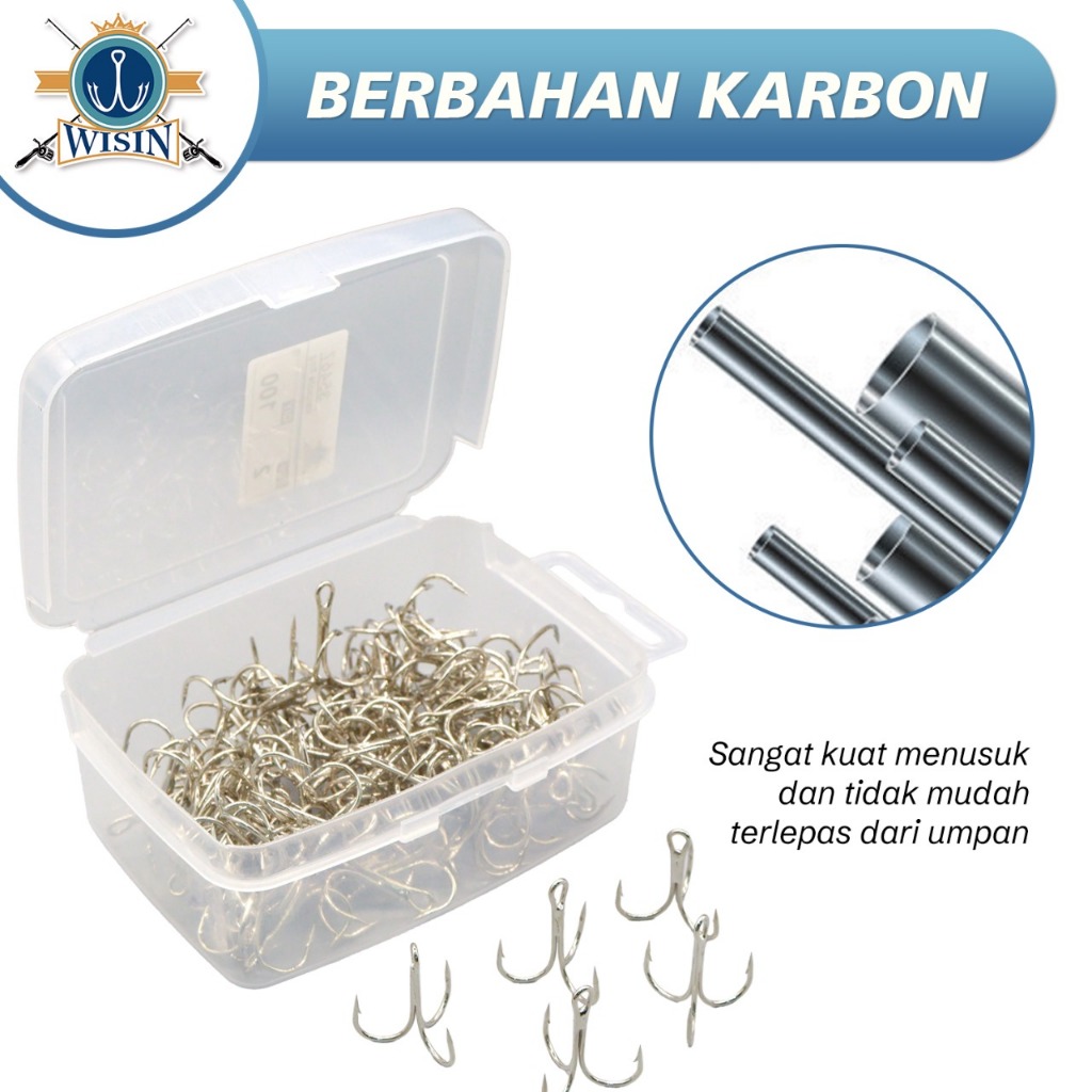 WISIN Hook Kail Pancing Treble Zeus GT Warna Silver 100pcs/Kotak,50cs/Kotak