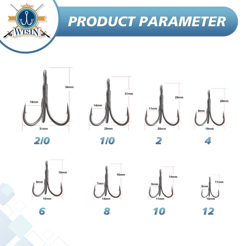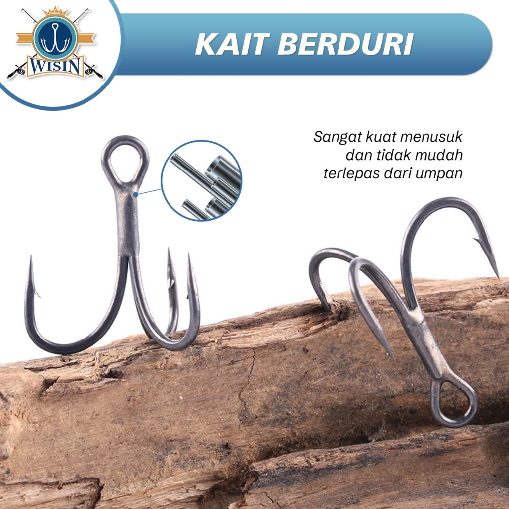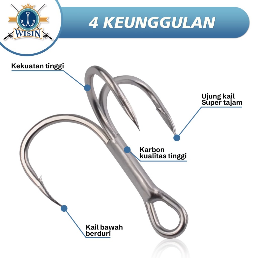 WISIN Hook Kail Pancing Treble Zeus GT Warna Silver 100pcs/Kotak,50cs/Kotak