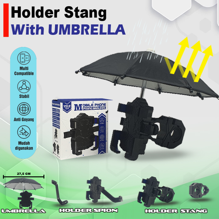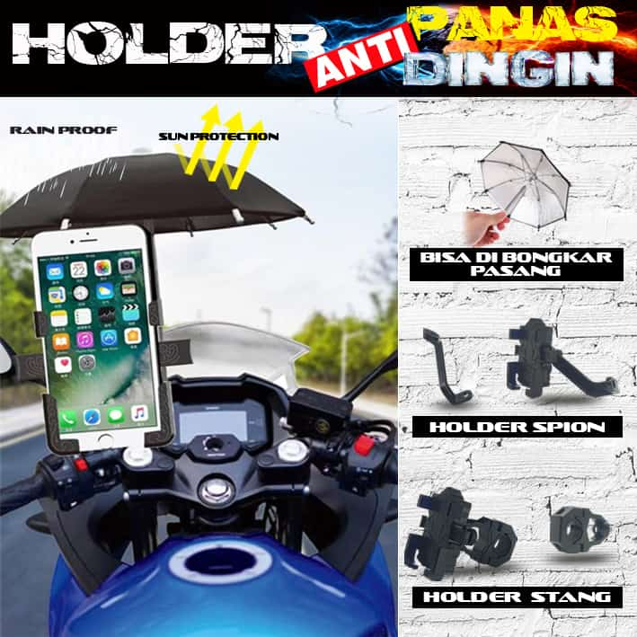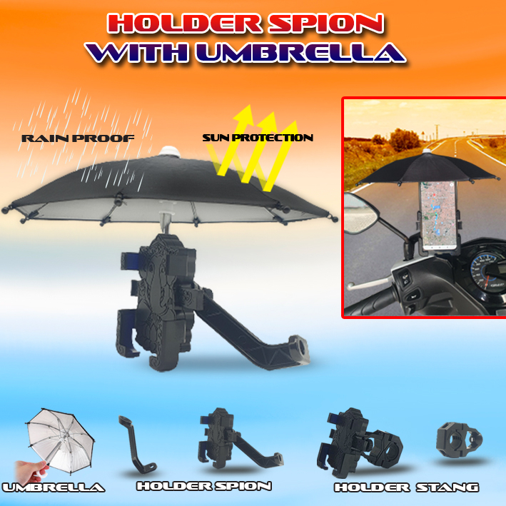 TERMURAH Holder motor payung holder spion stang sepeda motor holder hp anti hujan dan panas 2in1 payung mini bisa lepas