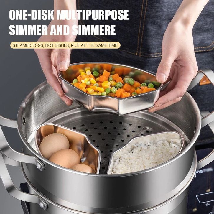 Wadah Mangkok Bowl Kukus Panci Stainless Sus 304 Anti Karat Foodgrade Kukusan Steamer Telur Sayur/Mangkok Kotak Kukus