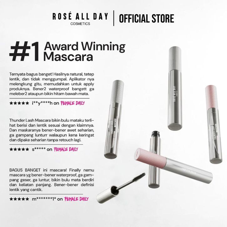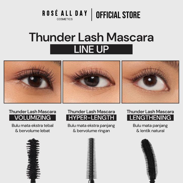 Rosé All Day Thunder Lash Mascara | Maskara Waterproof, Anti-Smudge,Tahan Lama, Bulu Mata Lentik & Tebal Sepanjang Hari