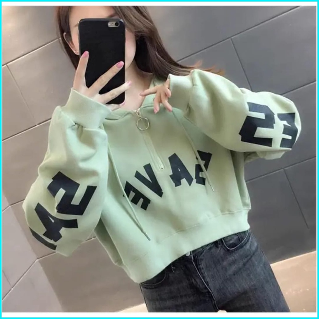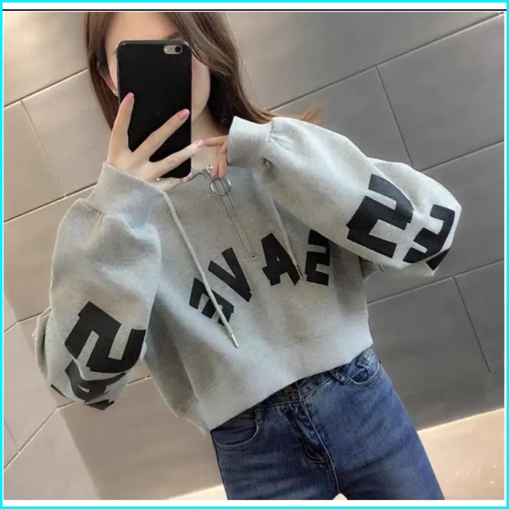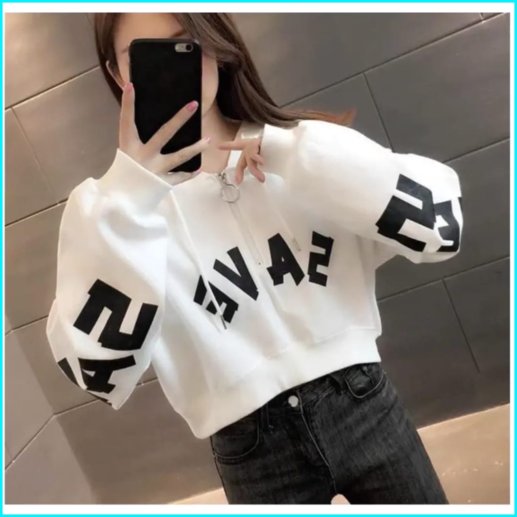 Save Crope Hodie Zipper Sweater Sweater Croope Top Wanita