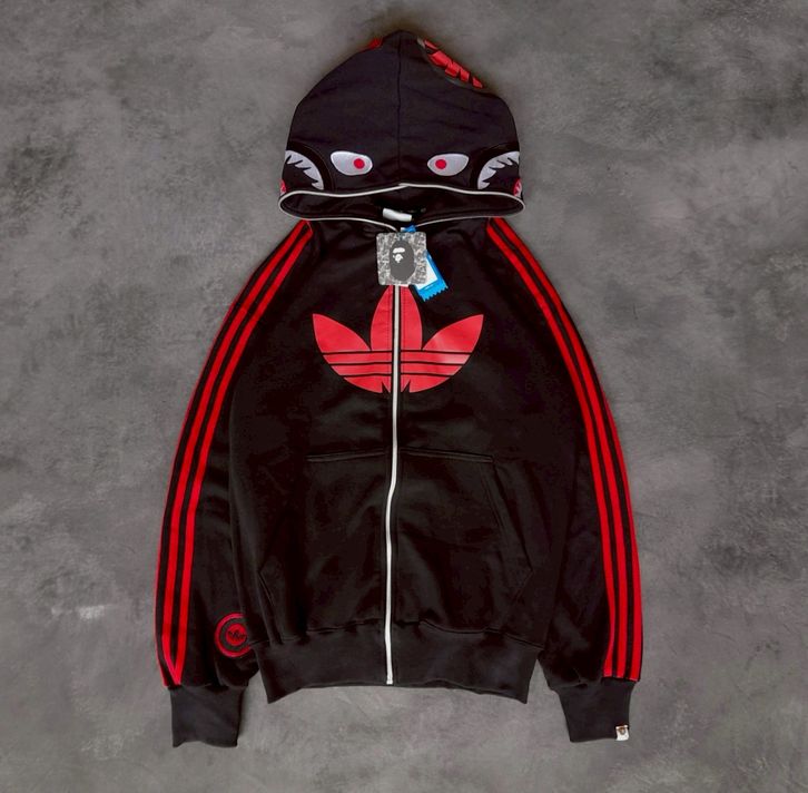 Af Bape Wgm X Adidas Trefoil Full Zipper Sweater Hoodie Cotton Fleece Size L-XL