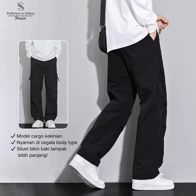 SUYX Celana Cargo Pria Korean Style - Model Oversize Fashionable, Bahan Berkualitas