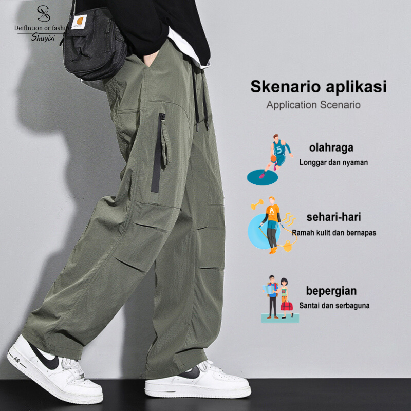 SUYX Celana Cargo Pria Korean Style - Model Oversize Fashionable, Bahan Berkualitas
