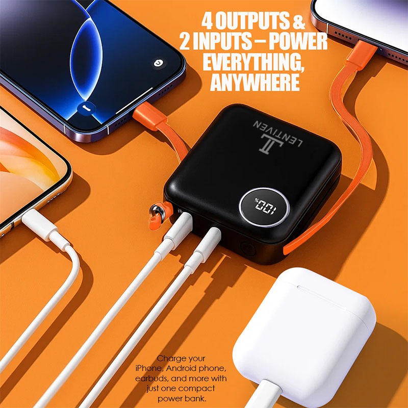 LENTIVEN 10000mAh Powerbank Mini Fast Charging 1 KABEL Type C For Iphone/Android CW048