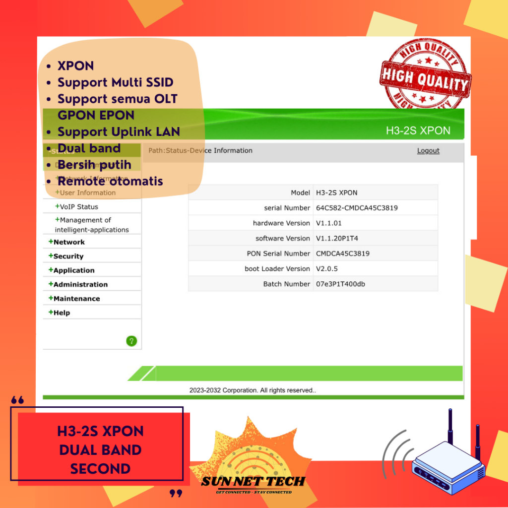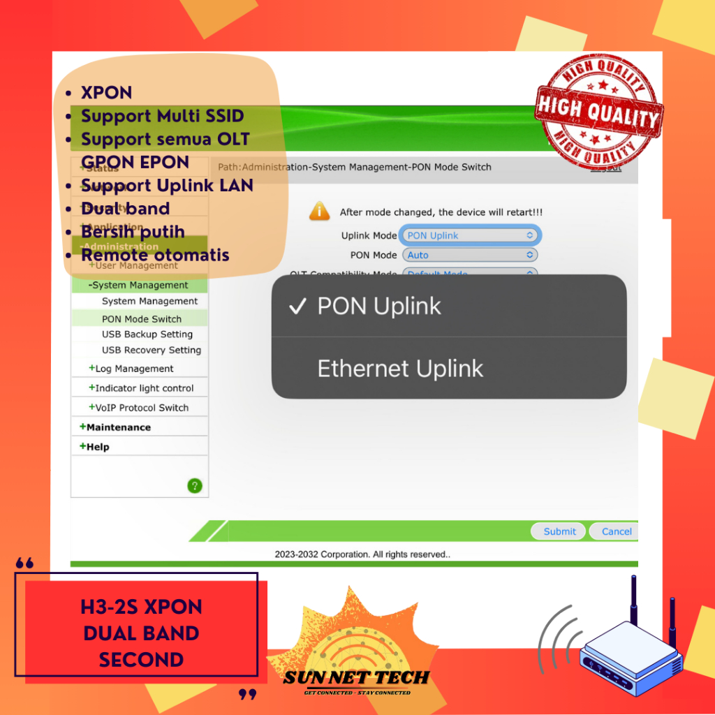 Xpon Dual Band Second H3-2S Support Ethernet Uplink
