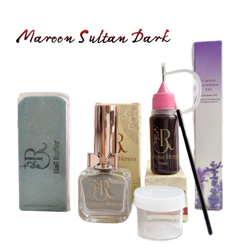 Rahma Henna 4in1 Berkilau Paket Lengkap /Maroon Sultan / Dark Maroon/ Light Maroon / Nail Art/ Kuku Halal