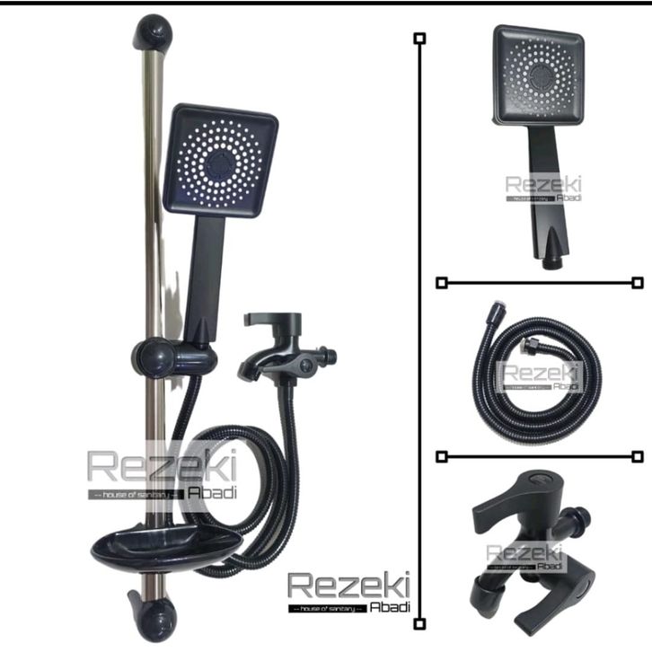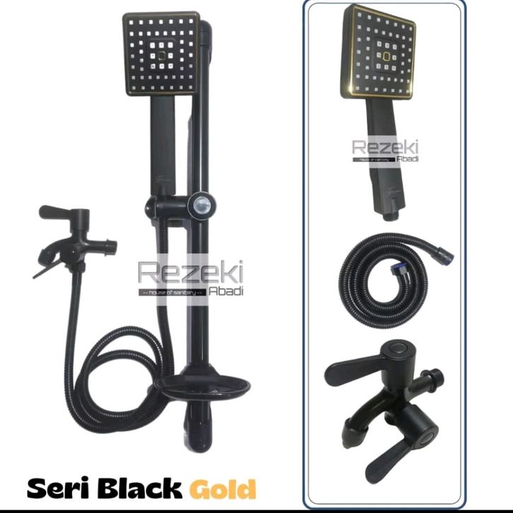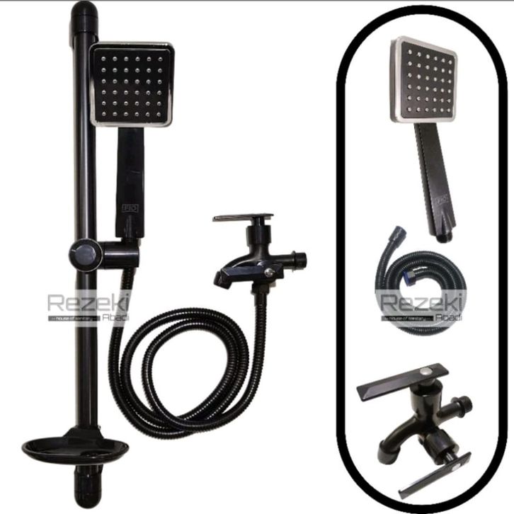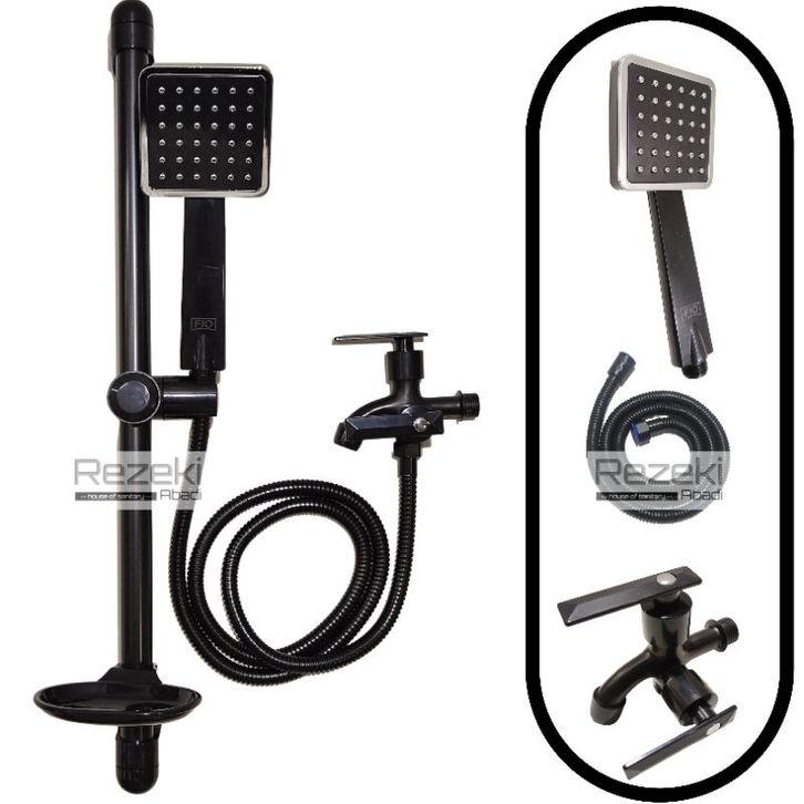 Paket Bundling Shower Tiang 3016B Model Kotak | Kran Cabang Black Series