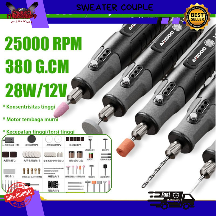 Bor Mini 25000 RPM 28W/12V Mini Drill Electric Engraver Grinder Gerinda Electrik Listrik / Alat Ukir Kayu /Alat Amplas