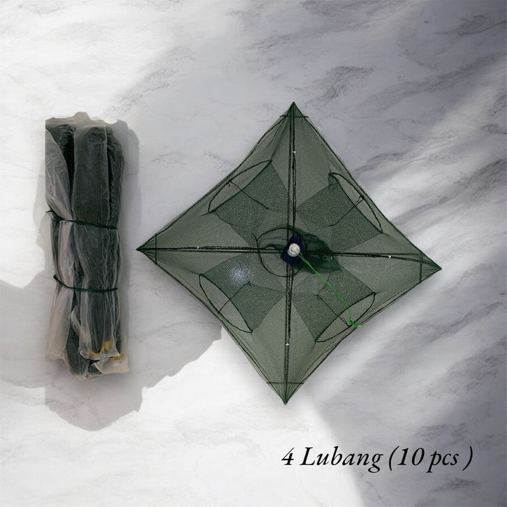 (10pcs)Bubu Perangkap Ikan 4 lubbang Jebakan Jaring Jala Prangkap Lipat Udang Kepiting Sungai u Laut Alat Pancing Fish