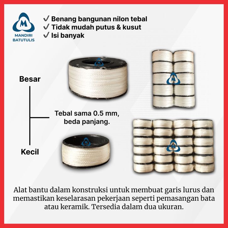 Benang Bangunan Putih - Benang Waterpass Keramik - Benang Tukang Besar/Kecil - Benang Bangunan Rol