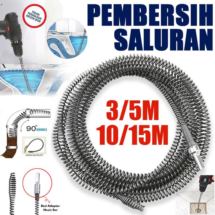 Alat Pembersih Saluran Kawat Pembersih Saluran Pipa Mampet Dengan Adaptor Bor 3M 5M 10M Pipe Cleaner