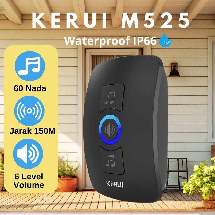 Kerui M525 Bel Pintu Rumah Wireless Receiver Alarm Bell 60 Nada - Hitam