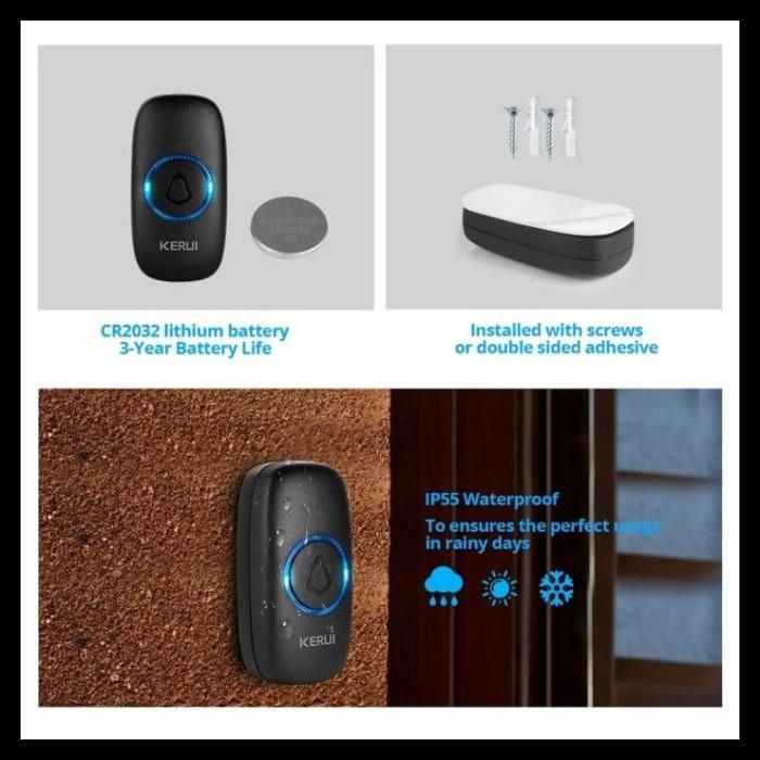 KERUI Tombol Bel F53 wireless Waterproof IP55 Transmitter Anti Air - Putih