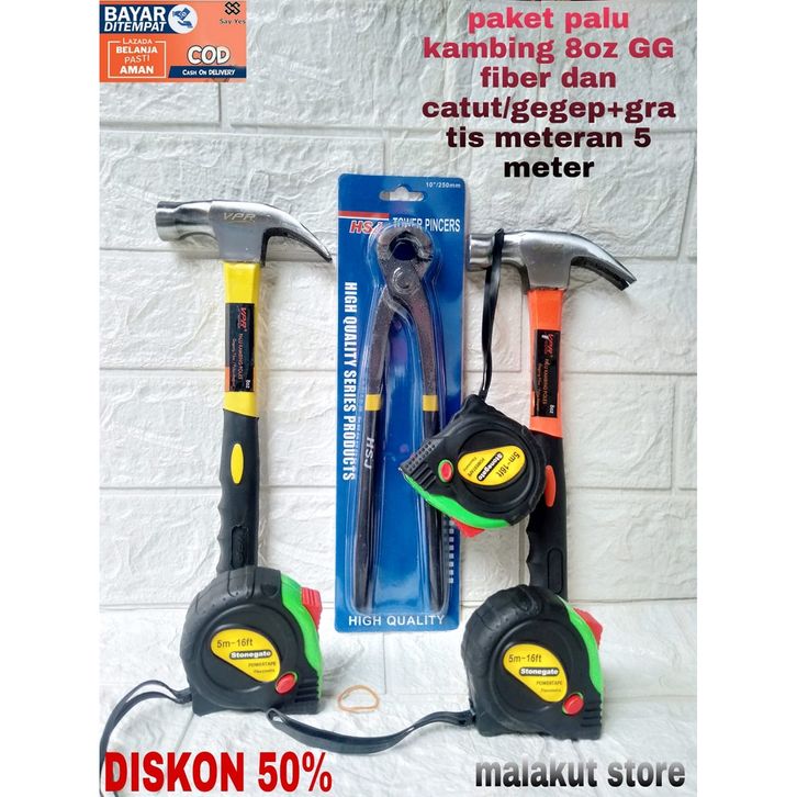 paket palu kambing 8oz dan catut/gegep kakatua+gratis meteran 5meter palu kambing/palu+cabut paku 8