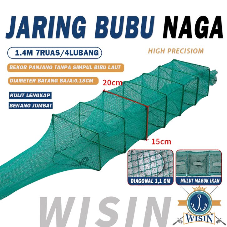 Jaring Bubu Naga Perangkap Udang Ikan Lipat Portable 7 Ruas / 4 lubbang 1.4 Meter