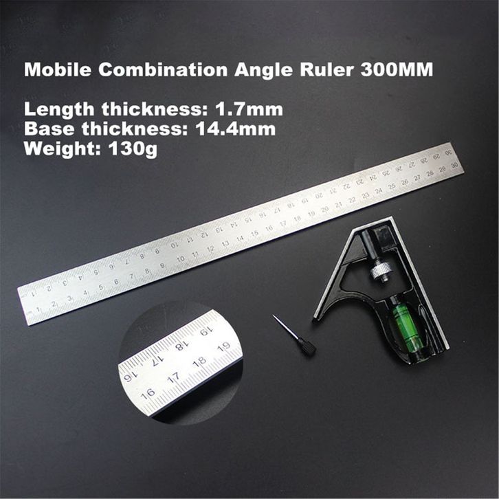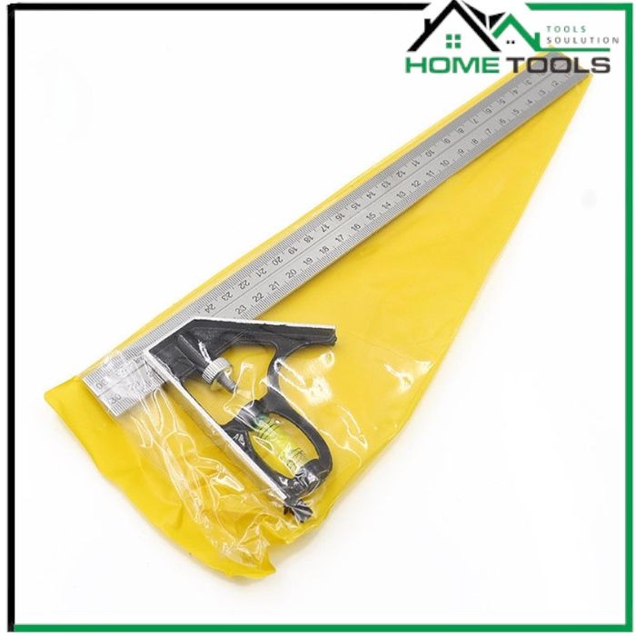 Penggaris Siku Waterpass Combination Square 45 Derajat Stainless Steel Siku L Tukang 30cm Pasekon