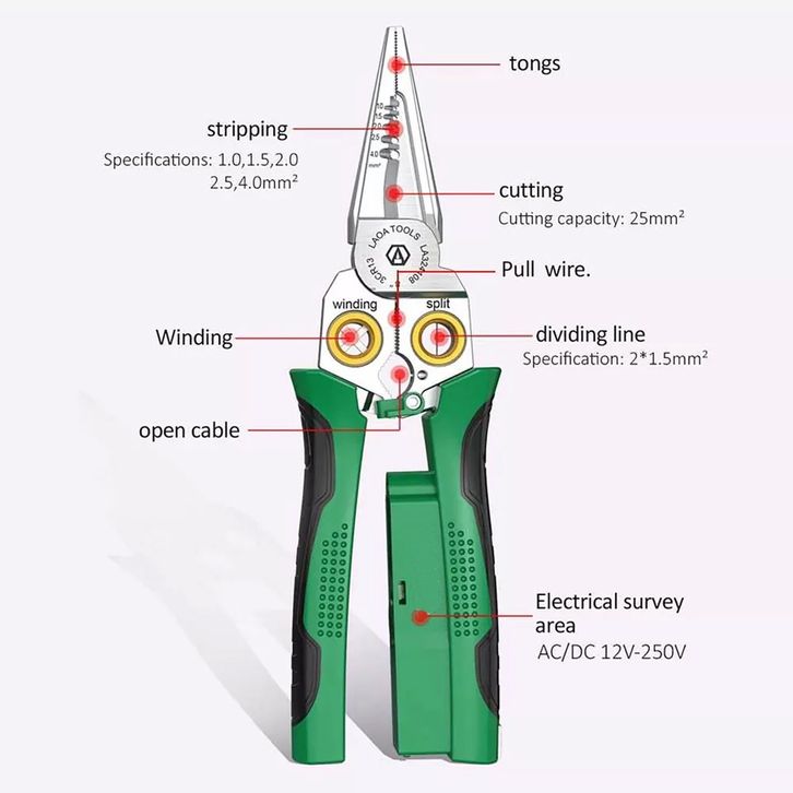 Tang Kabel Tespen Multifungsi 8in1 Potong Crimping Kupas Jepit Lilit Kabel Listrik Tebal Hidung