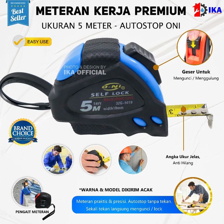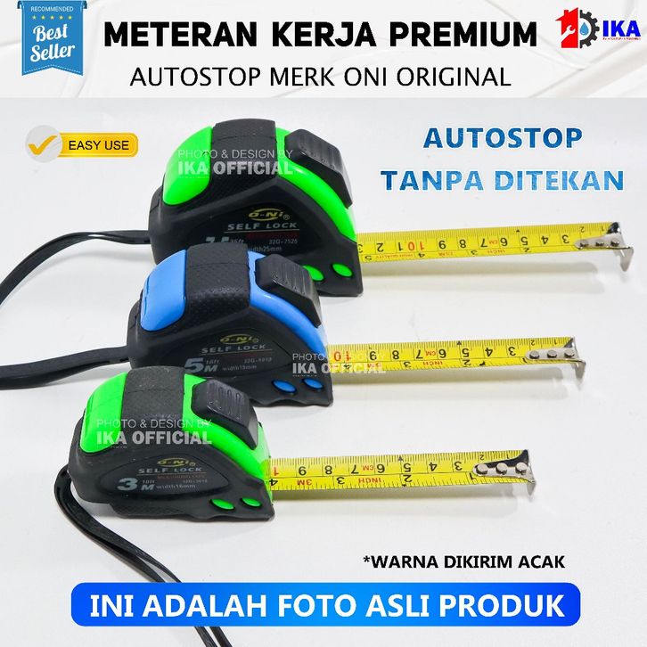 Roll Meter Karet Ketupat ONI SELFLOCK 3 5 7,5 10 Mtr - Meteran Otomatis Auto lock 3 meter/5 meter/