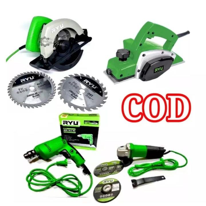 BAYAR DI TEMPAT !!! Paket pertukangan(4in1) Mesin Circular saw+Mesin serut+Bor+gerinda RYU