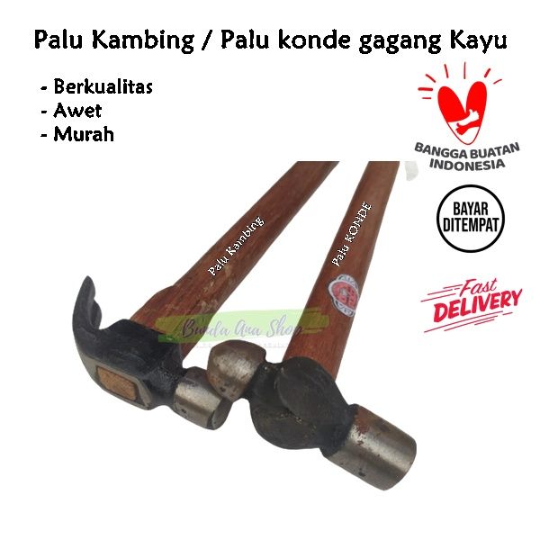 Palu Kambing Gagang kayu / Palu Konde gagang kayu ukuran Sedangl Palu Anti Copot Murah berkualitas