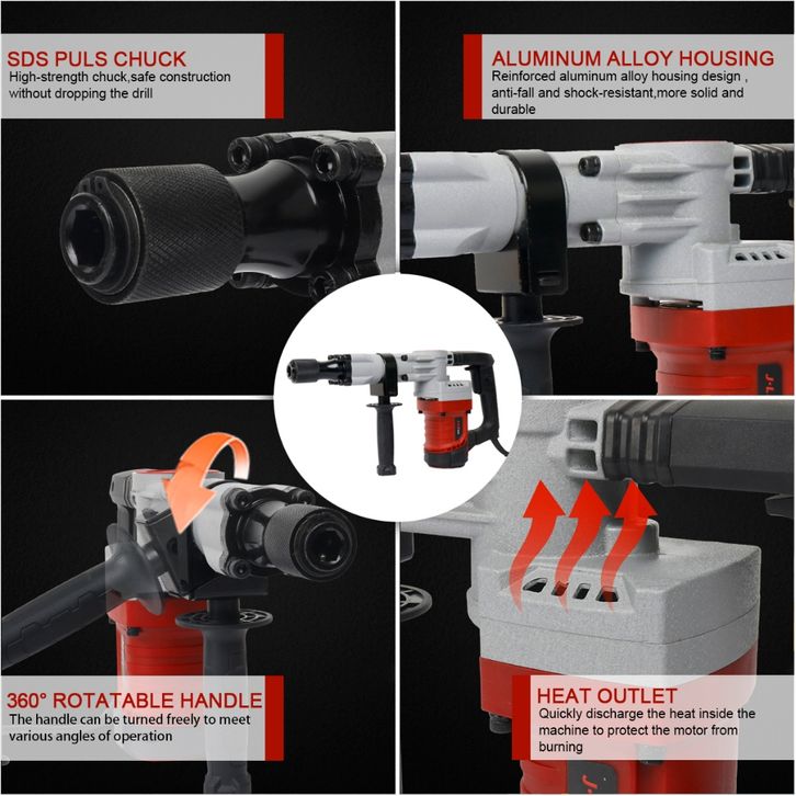 JLD Mesin Bobok Bor Tembok JX38 JX-38 1600W Mesin Rotary Hammer Impact Jack hammer Drill Bor Palu